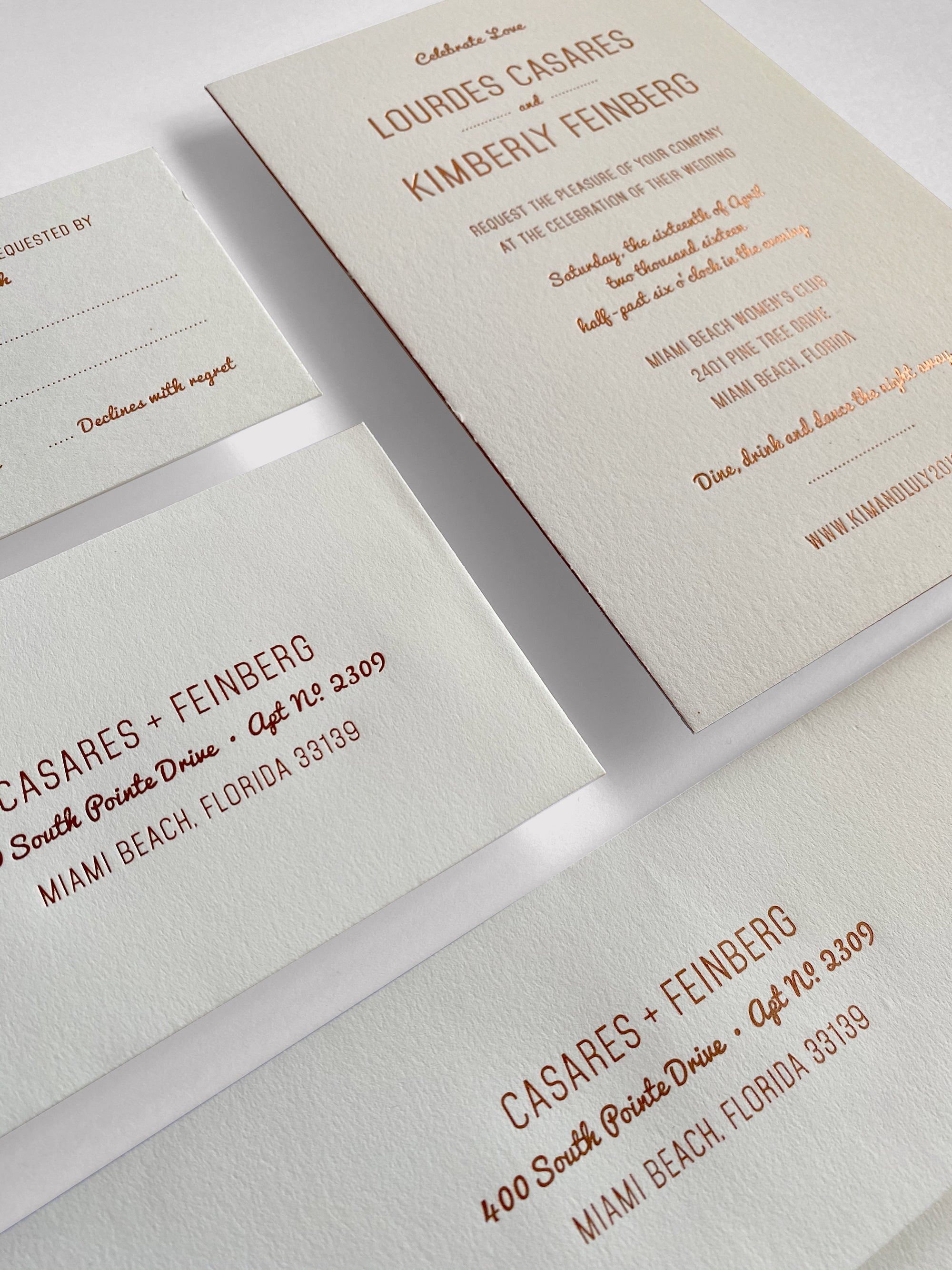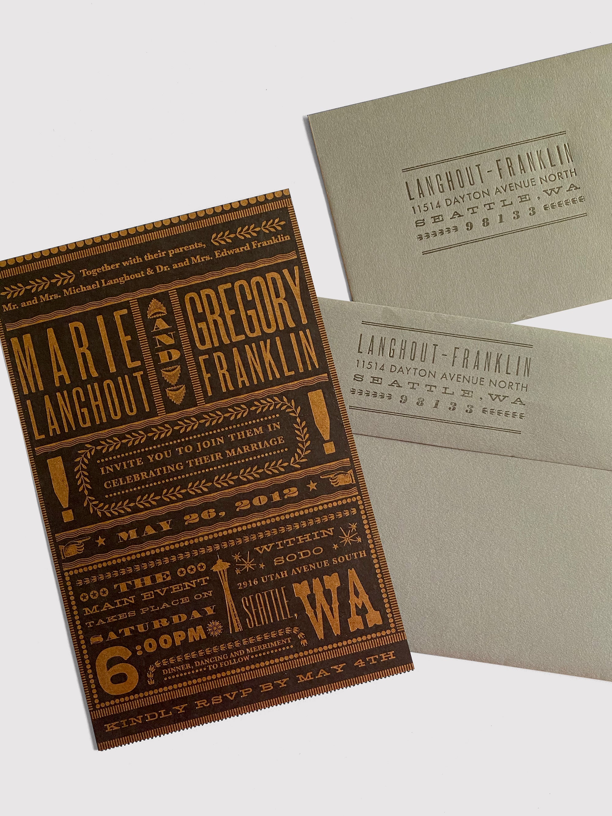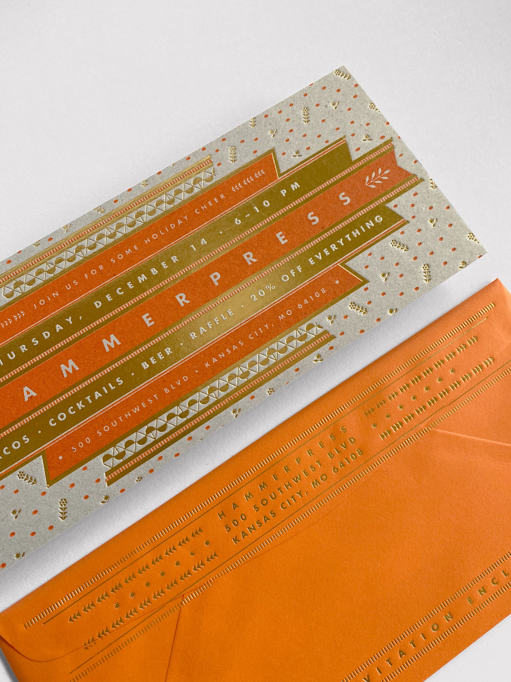 HAMMERPRESS offers custom quality custom letterpress printing, foil stamping, and die cutting for a wide range of projects from business cards and wedding invitations to posters, records covers and much more. We can and often do work directly with designers and clients who provide their own designs and can work with clients on how best to produce these designs, spec paper, and guide the project through the process to provide a beautiful final printed piece.