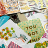 Set of assorted misprinted and discounted cards. Choose from pack of 5 (5 cards / 5 envelopes) or pack of 10 (10 cards / 10 envelopes).